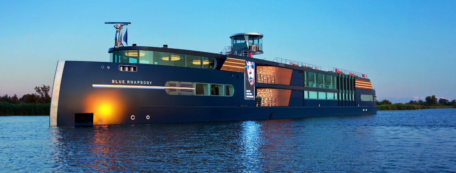 Ein einmaliges Erlebnis. Dafür sorgt die Ankunft der Blue Rhapsody, dem Schiff, das wir speziell und ausschließlich für Veranstaltungen bauen lassen. Das Schiff ist 85 Meter lang und 11,45 Meter breit, es ist weitläufig, modern, luxuriös und verführt mit stimmungsvollen Lounges auf vier Etagen. Es verfügt über einen beeindruckenden Axtbug und kombiniert ein zwangloses Erscheinungsbild mit internationalem Charme. An Bord wird Service auf allerhöchstem Niveau geboten.